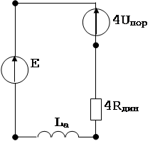 Тиристоры во включенном состоянии можно моделировать цепью из последовательно включенных источника напряжения Uпор и сопротивления Rдин