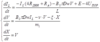 37 LET k1V = (Bo * Pi * D * w * I) / m1 - (nu / m1) * V6 - (ksi / m1) * X