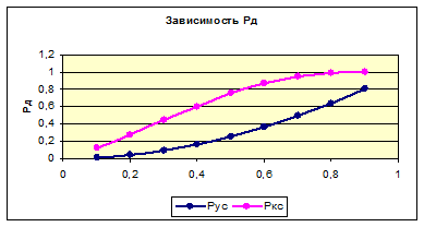 Построить графики Рд=(f)Pj для КС и УС. Сделать выводы о влиянии надёжности каналов связи аппаратуры УС на показатель структурной устойчивости системы.