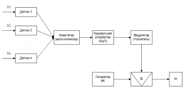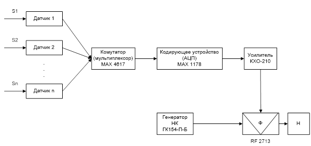 Структурная схема радиопередающей телеметрической системы с выбранными элементами[2]:
