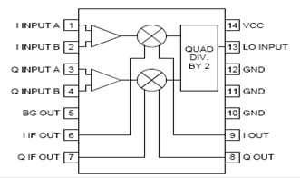 Демодулятор - RF2713 - монолитный интегрируемый модулятор/демодулятор квадратуры. Чтобы смодулировать сигналы I/Q на несущую частоту ИС содержит все необходимые компоненты, чтобы осуществить функцию модуляции/демодуляции и содержит делитель, фазовращатель, два двойных уравновешенных смесителя, и усилители основной полосы частот. Микросхема работает от единственного источника питания 3-6 В электропитание.