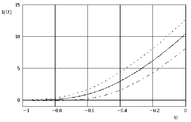 Наиболее критичным элементом усилительного звена является полевой транзистор VT4. Крутизна этого транзистора оказывает определяющее влияние на коэффициент усиления и граничную частоту усилительного звена, и должна быть не менее 15мА/В. Ключевой транзистор VT3 должен иметь крутизну не меньше чем 2мА/В в диапазоне токов от 0.4мА до 1мА, т.к. от неё зависит изменение напряжения на базе VT2 при его включении, и, следовательно, управляющее напряжение переключения ключа. Эти значения приняты с учетом результатов измерений реальных параметров транзисторов КП341 (см. ниже). Поскольку полевые транзисторы VT3, VT4 используются в таких режимах, для которых паспортные данные отсутствуют и разброс параметров различных экземпляров транзисторов одного типа большой (в несколько раз), необходим предварительный отбор транзисторов. Для определения характерных параметров транзистора, на которые можно рассчитывать, были сделаны измерения переходных характеристик и затем их математическая обработка. Измерения производились при 10-12 значениях тока стока (в зависимости от начального тока стока конкретного экземпляра транзистора). По результатам измерений были построены переходные характеристики каждого транзистора с помощью интерполяции кубическими сплайнами. По этим характеристикам для каждого транзистора была рассчитана зависимость крутизны от тока стока. Затем была посчитана средняя переходная характеристика и средняя зависимость крутизны от тока стока (математическое ожидание). Для обеих зависимостей рассчитаны их разбросы от средних значений (среднеквадратическое отклонение). Результаты вычислений представлены в виде графиков рис.9 и рис.10 . Эти данные были использованы в качестве базовых при расчете схемы, и в качестве критерия отбора транзисторов.