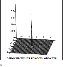 Объектом пеленгации является "точечный" излучатель, имеющий температуру 1000 К и находящийся на расстоянии 10 км. При таких условиях относительная функция яркости представляет собой функцию Дирака: