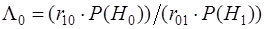 , зависящим от цен ошибок и априорных вероятностей наличия и отсутствия целей.