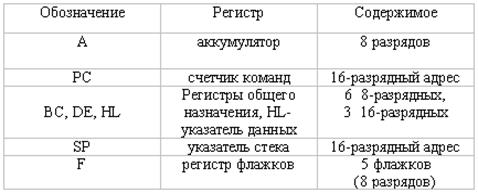 В МП использована мультиплексная шина данных. Адрес передается по двум шинам: старший байт адреса – по шине адреса, а младший байт адреса – по шине данных. В начале каждого машинного цикла младший байт адреса поступает на ШД. Этот младший байт может быть зафиксирован в любом 8-разрядном фиксаторе посредством подачи сигнала отпирания фиксатора адреса(ALE). В остальное время машинного цикла шина данных используется для передачи данных между ЦП и памятью или устройствами ввода/вывода. ЦП вырабатывает для шины управления сигналы Сигнал INTR имеет такое же назначение, как и сигнал INT в МП 580ВМ80. Каждый из входов RST5.5, RST6.5, RST7.5. может программно маскироваться. |
