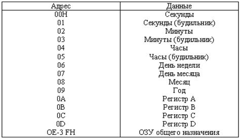 Таймер. Одно из наиболее необходимых эксплуатационных удобств – наличие встроенных часов, показания которых постоянно или по запросу оператора выводятся на экран. Можно также обеспечить выдачу команд на включение или выключение внешних устройств в заданное время. Часы могут быть реализованы как программно, так и аппаратно. Условное обозначение и основная схема включения: