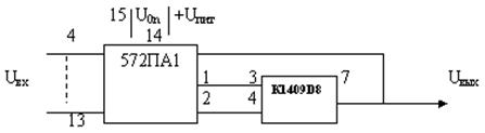 2.3. Выбор и обоснование применения элементной базы. Для создания разрабатываемого устройства согласно техническому заданию необходимо применить комплектующие отечественного производства и максимально использовать стандартные компоненты и изделия. Исходя из этого выбор элементной базы будет следующим. Резисторы, конденсаторы, диоды и другие дискретные компоненты. Для применения в разрабатываемом устройстве были выбраны резисторы марки МЛТ мощностью 0,125 Вт. Выбор был сделан, исходя из соображений достаточной надежности, точности и низкой общей стоимости прибора. Резисторы марки МЛТ в достаточной степени удовлетворяют вышеприведенным требованиям и являются одной из наиболее распространенных марок резисторов, что сыграло решающую роль при их выборе. Другие дискретные компоненты выбраны исходя из аналогичных соображений. Интегральные микросхемы. Ввиду большого разнообразия серий микросхем, пригодных для использования в разрабатываемом устройстве и значительного количества параметров микросхем, их выбор аналогично выбору дискретных компонентовзатруднителен. Поэтому выбор микросхем будет произведен по их параметрам. Справочные данные. 512 ВИ1 Un