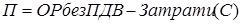 Прибуток підприємства розраховуєтся як різниця між річним обсягом реалізації без податку на додану вартість, та виробництво, тобто: