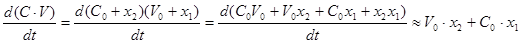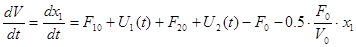– изменение во времени отклонения объема от номинального в баке;
