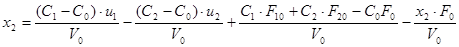 C1 ,C2 ,C - концентрация на истоке и притоке системы, Кмоль/м3 ;