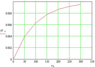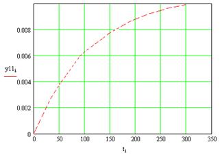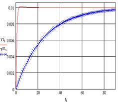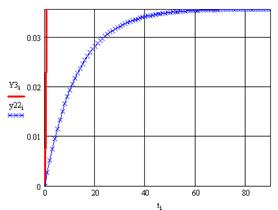 Рассмотрим наполнение бака от 0 до номинального значения расхода с учетом прироста, приданного в линеаризованной модели. Таким образом, рассмотрим скачок u 1 =0,03; u 2 =0.