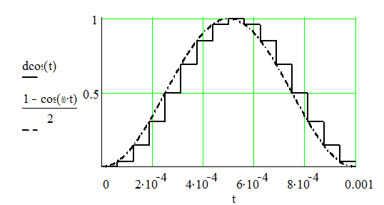 Полезный сигнал на выходе регистра аппроксимируется ступенчато, что соответственно вносит свои погрешности и искажения. Возьмем сигнал для примера