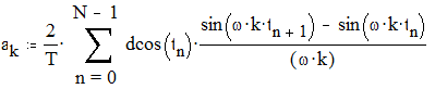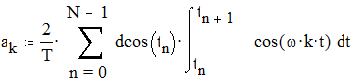 Рассмотрим спектр сигнала на выходе ФС. Для этого применим разложение в ряд Фурье для периодического сигнала dcos(t). Найдем коэффициенты для разложения в ряд по косинусам: