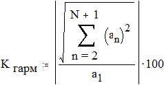 Найдем коэффициент гармоник после ФНЧ , амплитуды гармоник станут соответственно: