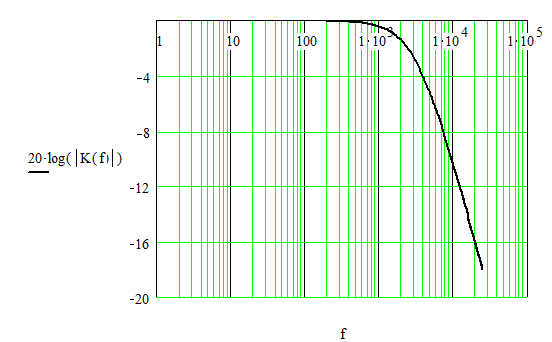 Найдем частоту wв : wв=1/(Ku+1)RC=2.10-4 Гц.