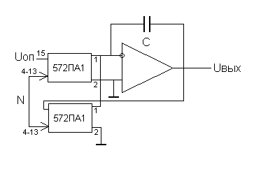R=10 КОм ; n=10 (разрядность ЦАП).