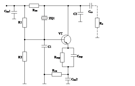 В качестве задающего генератора используем транзисторный АГ с кварцевой стабилизацией частоты (рис.1.2), работающий на частоте