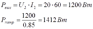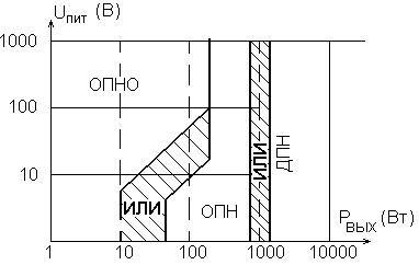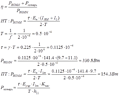 По рис. 5.1, зная выходную мощность Рвых=1200Вт и минимальное напряжение питания