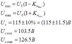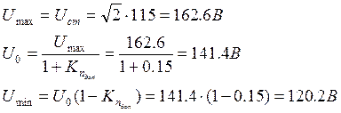 При минимально возможном входном напряжении уровень напряжения на выходе выпрямителя будет минимальным, а ток – максимальным, и ,наоборот, при максимально возможном напряжении, напряжение на выходе будет максимальным, а ток минимальным, что следует из условия постоянства мощности
