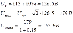 Максимальный ток на выходе сетевого выпрямителя при минимальном заданном сетевом напряжении: