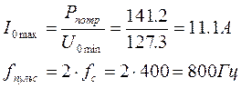 , выбираем ДПН (двухконтактный преобразователь напряжения), мостовая схема. Принимаем частоту преобразования ![]()