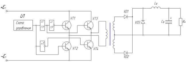 Мостовая схема ДПН характеризуется минимальным напряжением на запертом транзисторе (