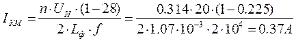 Приняв индуктивность выходного трансформатора равной нулю, вычислили индуктивность дросселя фильтра, для которой гарантированно устанавливается режим НТ.