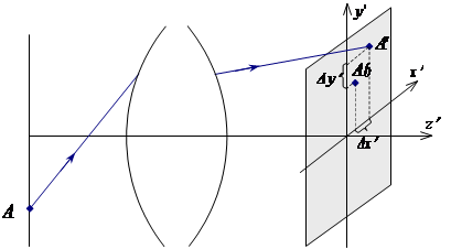 – это отклонения координат точки A΄ пересечения реального луча с плоскостью изображения от координат точки A΄0