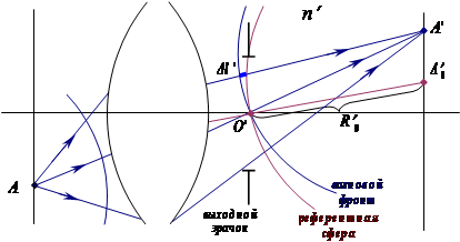 Для вычисления аберраций необходимо определить точку референтного (идеального) изображения A΄0 , в которой должно находиться изображение по законам гауссовой оптики. Относительно этой точки и определяют аберрации.