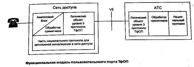 Протокол, обеспечивающий перенос через интерфейс V5 сигнальной информации при обслуживании вызовов абонентов ТфОП, не управляет процедурами обработки вызова в сети доступа и поэтому используется совместно с национальным протоколом сигнализации, реализованным в АТС. Большинство сигналов не интерпритируется протоколом ТфОП, а просто переносится им от пользовательского порта сети доступа к логическому оьъекту национального протокола АТС и в обратном направлении.