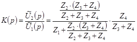 Передаточную функцию цепи находим через операционные сопротивления (проводимости) ветвей по формуле