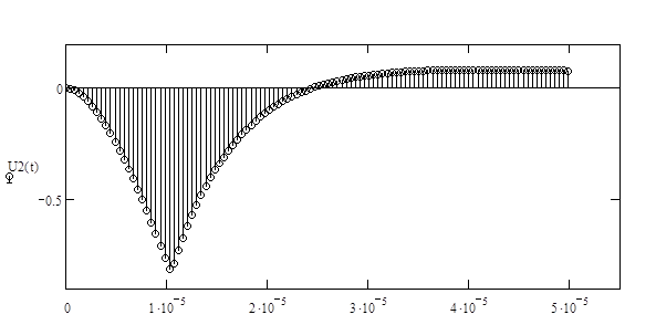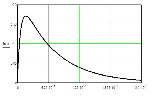 Затем найдем импульсную характеристику линейной цепи и построим ее график. Импульсная характеристика равна: