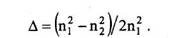 Будем обозначать через n 1 и n 2 показатели преломления сердцевины и оболочки, соответственно. Один из важных параметров, который характеризует волокно, это – относительная разность показателей преломления Δ :