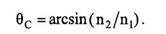 Формальные выкладки удобнее производить для ступенчатого волокна (волокна со ступенчатым профилем показателя преломления), в котором показатель преломления сердцевины является постоянной величиной (n 1 = const ). На рисунке 2 показан ход лучей в таком волокне. Так как сердцевина является оптически более плотной средой по отношению к оболочке (n 1 > n 2 ), то существует критический угол падения ΘС - внутренний угол падения на границу, при котором преломленный луч идет вдоль границы сред (Θ2 = 90° ). Из закона Снеллиуса легко найти этот критический угол падения: