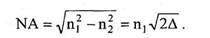 Фирмы-изготовители волокна экспериментально измеряют угол ΘА и указывают соответствующее значение числовой апертуры для каждого поставляемого типа волокна. Для волокна со ступенчатым профилем легко получить значение числовой апертуры, выраженное через показатели преломления: