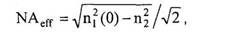 цевины и оболочки. Для градиентного волокна с параболическим профилем показателя преломления, определяется эффективная числовая апертура, которая равна
