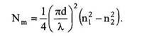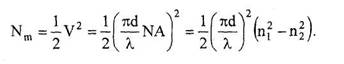 При больших значениях V количество мод Nm для ступенчатого волокна можно оценить по формуле: