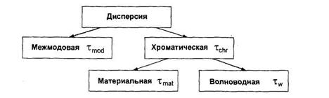 Обычно дисперсия нормируется в расчете на 1 км, и измеряется в пс/км. Дисперсия в общем случае характеризуется тремя основными факторами, рассматриваемыми ниже: