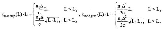 где Lc - длина межмодовой связи (для ступенчатого волокна порядка 5 км, для градиентного - порядка 10 км).