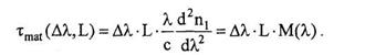 Материальная дисперсия обусловлена зависимостью показателя преломления волокна от длины волны. В выражение для дисперсии одномодового волокна входит дифференциальная зависимость показателя преломления от длины волны: