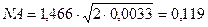 Числовую апертуру волокна рассчитаем по формуле (5). Подставив значения n 1 =1,466 , Δ=0,33 % , получим: