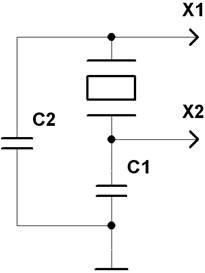 Опорную частоту синхронизации МК определяет кварцевый резонатор, подключаемый к выводам Х1 и Х2. Х1 является входом, а Х2 – выходом генератора, способного работать в диапазоне частот от 1 до 12 МГц. В состав генератора МК входят два счетчика с модулями пересчета 3 и 5. Первый используется для формирования сигнала системой синхронизации (0,5 мкс). Этот же сигнал поступает на счетчик машинных циклов, на входе которого через каждые пять сигналов синхронизации формируется сигнал САВП (2.5 мкс), идентифицирующий машинный цикл и используемый в расширенных МК системах для стробирования адреса внешней памяти.