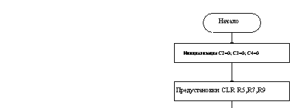 а) инициализация обнуляет счетчики количества деталей (регистры R0, R1, R2, R3);