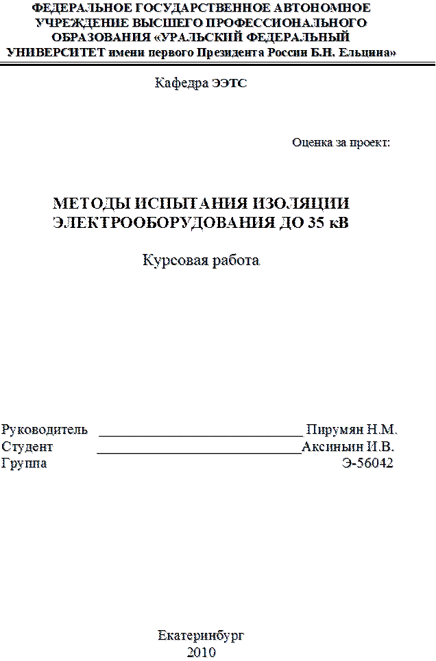 3. А.В. Петров | Методы испытания электрической изоляции– СПб ТПУ, 2007 – 127с.