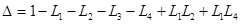 3) Определитель системы включает 4 контура и 2 пары некасающихся контуров L1 ,L2 ; L1 ,L4