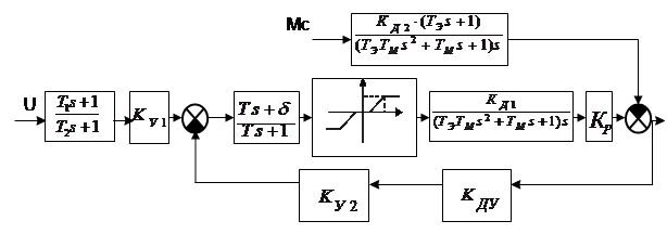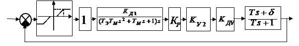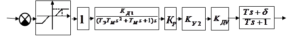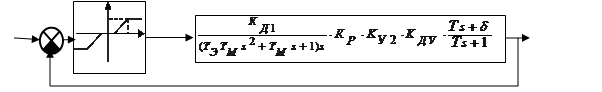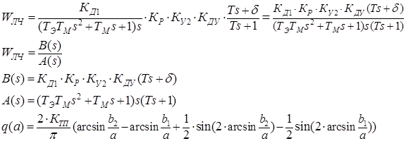 Исходя из задания, необходимо принять усилительное устройство системы нелинейным элементом. В системе автоматического регулирования электромеханического интегратора таким устройством является тиристорный преобразователь.
