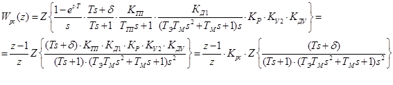 Выполним необходимые преобразования и получим выражение передаточной функции разомкнутой импульсной системы в следующем виде: