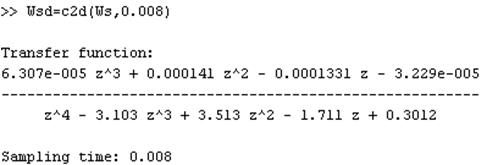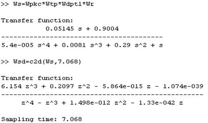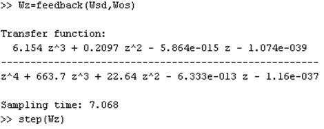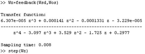 Найдем передаточную функцию замкнутой импульсной системы и построим ее дискретный выходной сигнал в ППП Matlab 6.5:
