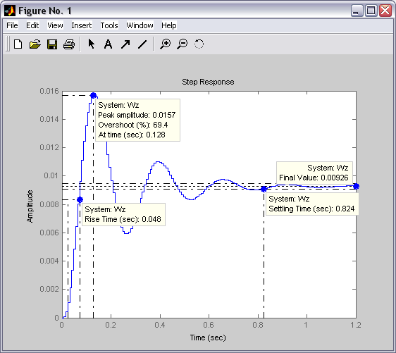 Для построения переходной характеристики гармонически линеаризованной нелинейной САР воспользуемся ППП Matlab 6.5: