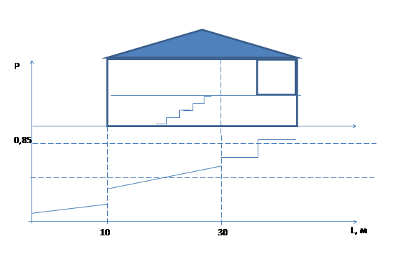 График зависимости вероятности обнаружения нарушителя от проделанного им пути